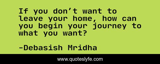 This page presents the quote "If you don’t want to leave your home, how can you begin your journey to what you want?". Author of this quote is Debasish Mridha. This quote is about philosophy, debasish-mridha, what-do-you-want, leave-your-home, quotes, journey, inspirational, home, enthusiasm,.