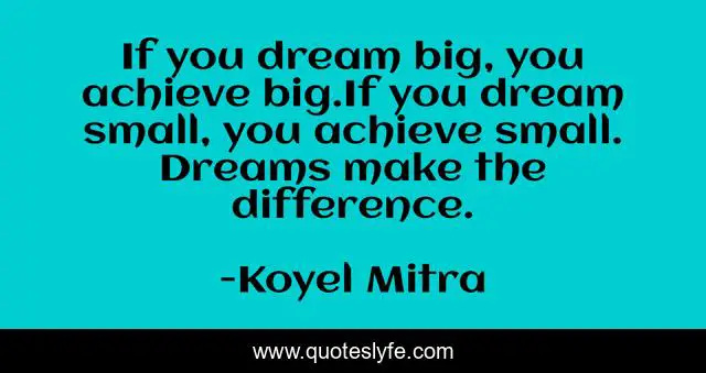 "Koyel Mitra Quotes." Quoteslyfe.com, 2025. Sat. 06 Dec. 2025. <https://www.quoteslyfe.com/quote/If-you-dream-big-you-achieve-big-116064>.