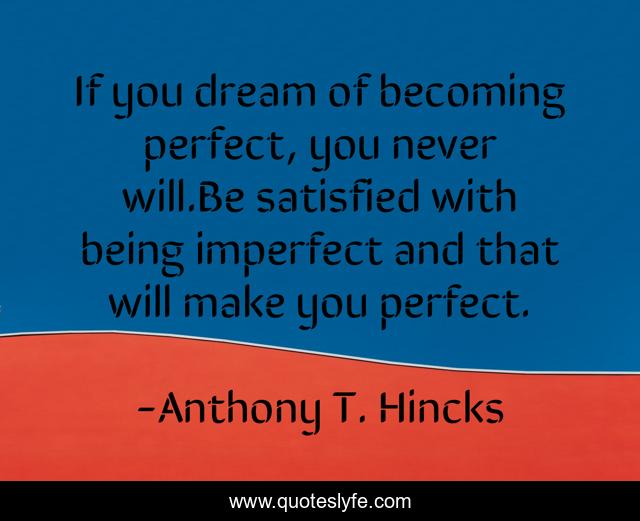 This page presents the quote "If you dream of becoming perfect, you never will.Be satisfied with being imperfect and that will make you perfect.". Author of this quote is Anthony T. Hincks. This quote is about perfect, life, love, never-will, make, perfection, dream, affection, philosphy,.