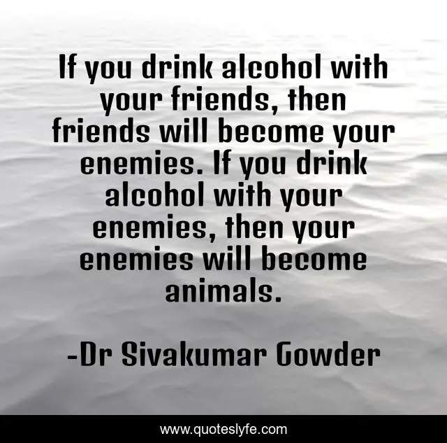 This page presents the quote "If you drink alcohol with your friends, then friends will become your enemies. If you drink alcohol with your enemies, then your enemies will become animals.". Author of this quote is Dr Sivakumar Gowder. .