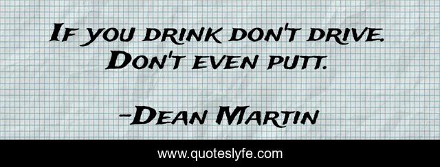 This page presents the quote "If you drink don't drive. Don't even putt.". Author of this quote is Dean Martin. This quote is about drink, drive,.