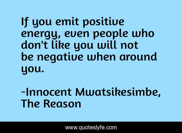 This page presents the quote "If you emit positive energy, even people who don't like you will not be negative when around you.". Author of this quote is Innocent Mwatsikesimbe, The Reason. This quote is about confidence, positivity, optimism, self-improvement, self-help, happiness,.