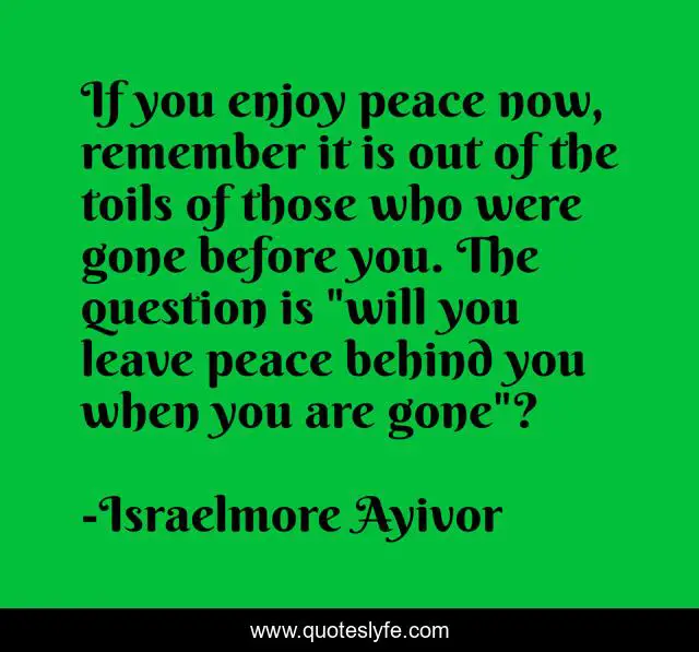 "Israelmore Ayivor Quotes." Quoteslyfe.com, 2025. Fri. 05 Dec. 2025. <https://www.quoteslyfe.com/quote/If-you-enjoy-peace-now-remember-it-129922>.