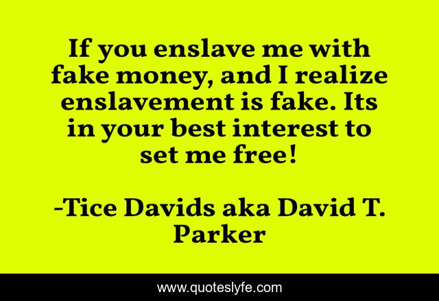 "Tice Davids aka David T. Parker Quotes." Quoteslyfe.com, 2025. Sat. 06 Dec. 2025. <https://www.quoteslyfe.com/quote/If-you-enslave-me-with-fake-money-160531>.