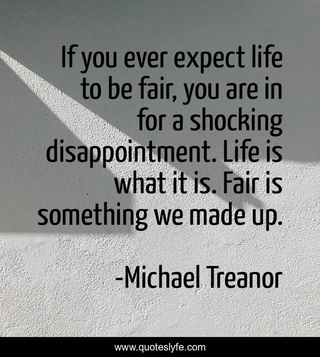 This page presents the quote "If you ever expect life to be fair, you are in for a shocking disappointment. Life is what it is. Fair is something we made up.". Author of this quote is Michael Treanor. .