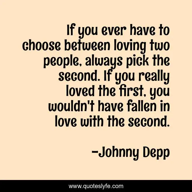 This page presents the quote "If you ever have to choose between loving two people, always pick the second. If you really loved the first, you wouldn't have fallen in love with the second.". Author of this quote is Johnny Depp. This quote is about enthusiasm, love, inspirational, affection, choices,.