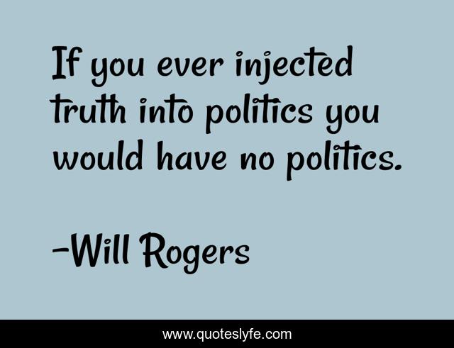 This page presents the quote "If you ever injected truth into politics you would have no politics.". Author of this quote is Will Rogers. .