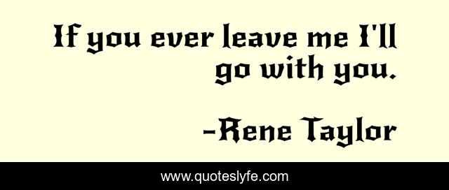 This page presents the quote "If you ever leave me I'll go with you.". Author of this quote is Rene Taylor. This quote is about men, women,.