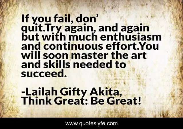 "Lailah Gifty Akita, Think Great: Be Great! Quotes." Quoteslyfe.com, 2025. Fri. 05 Dec. 2025. <https://www.quoteslyfe.com/quote/If-you-fail-don-quit-Try-again-95116>.