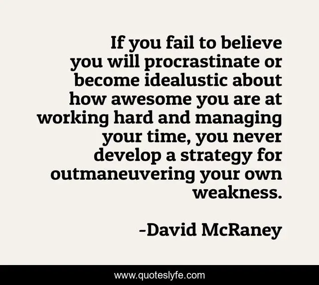 If you fail to believe you will procrastinate or become idealustic about how awesome you are at working hard and managing your time, you never develop a strategy for outmaneuvering your own weakness.