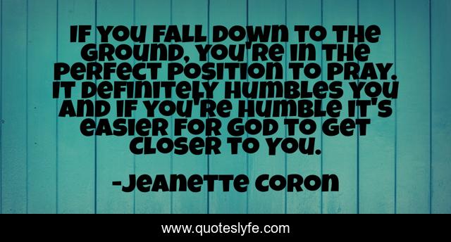 This page presents the quote "If you fall down to the ground, you're in the perfect position to pray. It definitely humbles you and if you're humble it's easier for God to get Closer to You.". Author of this quote is Jeanette Coron. This quote is about closer-to-god, mistakes, grace, praying, humility,.