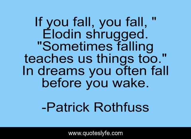 If you fall, you fall, " Elodin shrugged. "Sometimes falling teaches us things too." In dreams you often fall before you wake.