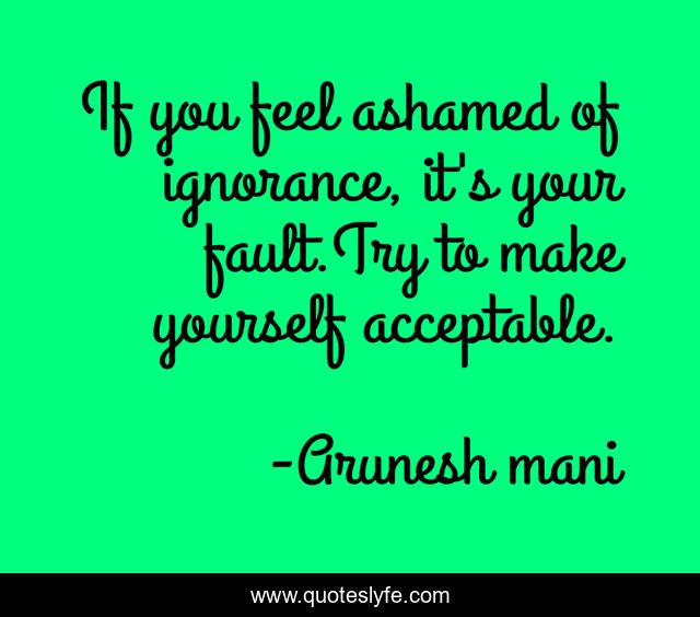 This page presents the quote "If you feel ashamed of ignorance, it's your fault.Try to make yourself acceptable.". Author of this quote is Arunesh mani. This quote is about enthusiasm, ignorance, inspirational,.