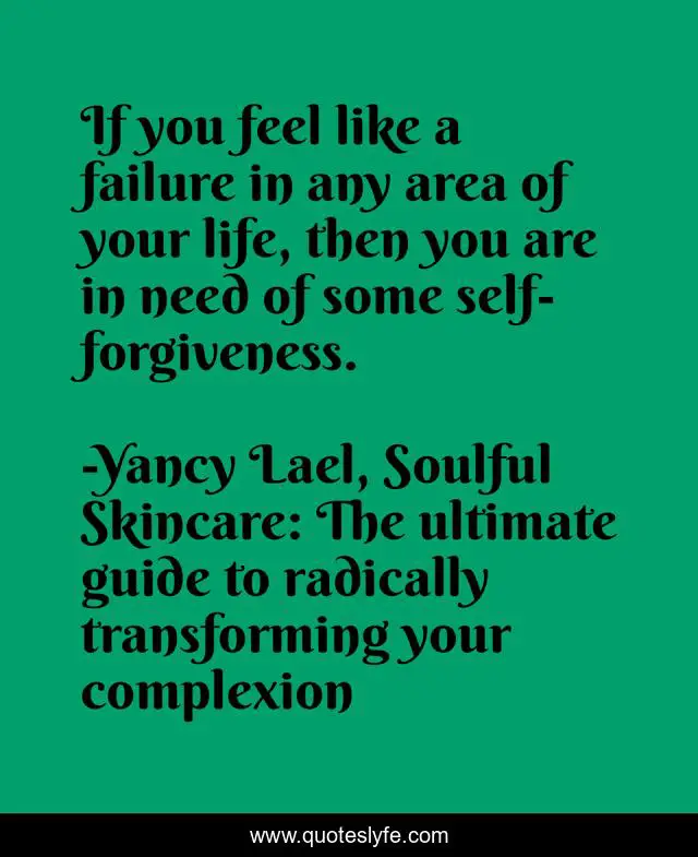This page presents the quote "If you feel like a failure in any area of your life, then you are in need of some self-forgiveness.". Author of this quote is Yancy Lael, Soulful Skincare: The ultimate guide to radically transforming your complexion. This quote is about healing-the-past, health, healing, skin-care, skin,.