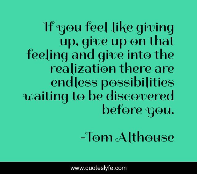 "Tom Althouse Quotes." Quoteslyfe.com, 2025. Mon. 08 Dec. 2025. <https://www.quoteslyfe.com/quote/If-you-feel-like-giving-up-give-185565>.