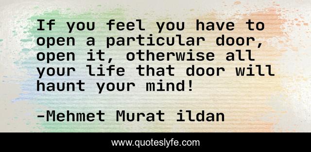 This page presents the quote "If you feel you have to open a particular door, open it, otherwise all your life that door will haunt your mind!". Author of this quote is Mehmet Murat ildan. This quote is about door, feel, mind, haunt, doors, open,.