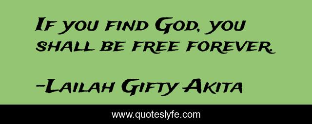 This page presents the quote "If you find God, you shall be free forever.". Author of this quote is Lailah Gifty Akita. This quote is about christian, inspirational, bondage, god, freedom, free, liberty, slaves, self-help,.