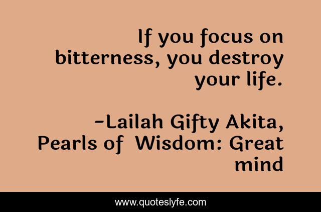 "Lailah Gifty Akita, Pearls of Wisdom: Great mind Quotes." Quoteslyfe.com, 2025. Fri. 05 Dec. 2025. <https://www.quoteslyfe.com/quote/If-you-focus-on-bitterness-you-destroy-76225>.