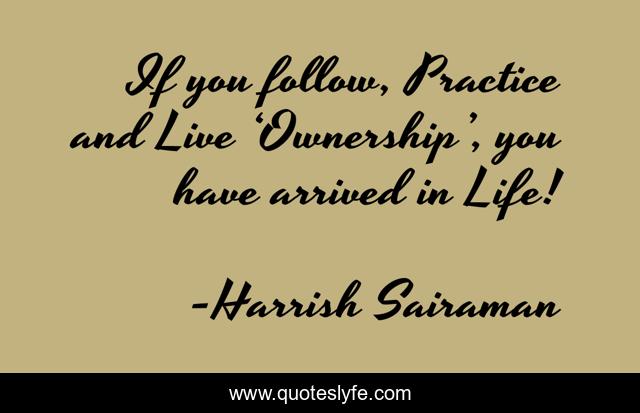 This page presents the quote "If you follow, Practice and Live ‘Ownership’, you have arrived in Life!". Author of this quote is Harrish Sairaman. This quote is about life, ownership, quotes-about-life,.