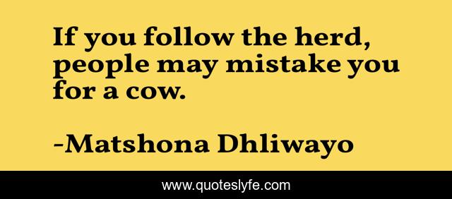 "Matshona Dhliwayo Quotes." Quoteslyfe.com, 2025. Mon. 08 Dec. 2025. <https://www.quoteslyfe.com/quote/If-you-follow-the-herd-people-may-189916>.