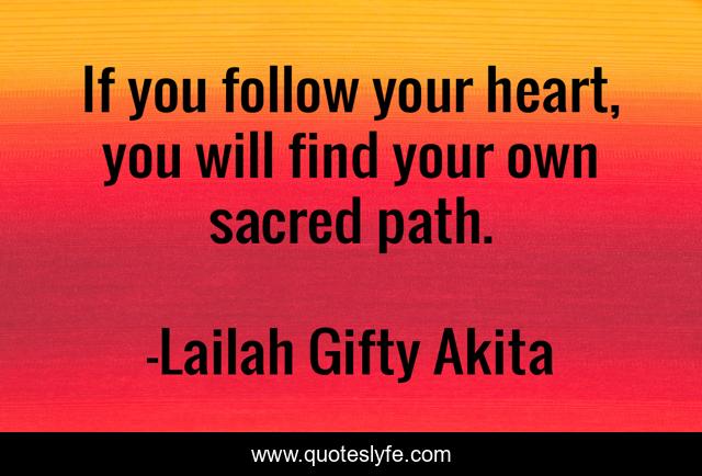 This page presents the quote "If you follow your heart, you will find your own sacred path.". Author of this quote is Lailah Gifty Akita. This quote is about path, instincts, inspirational, enthusiasm,.