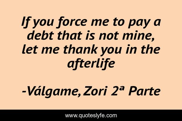 This page presents the quote "If you force me to pay a debt that is not mine, let me thank you in the afterlife". Author of this quote is Válgame, Zori 2ª Parte. .
