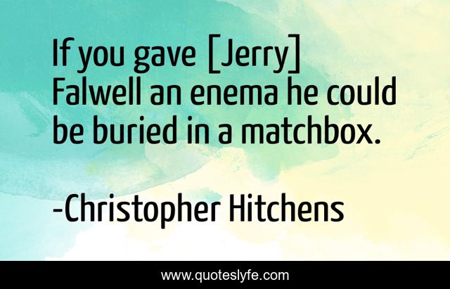 This page presents the quote "If you gave [Jerry] Falwell an enema he could be buried in a matchbox.". Author of this quote is Christopher Hitchens. This quote is about religion, death,.