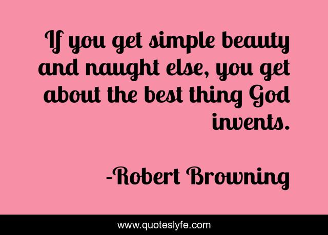 This page presents the quote "If you get simple beauty and naught else, you get about the best thing God invents.". Author of this quote is Robert Browning. This quote is about simple, god, best,.