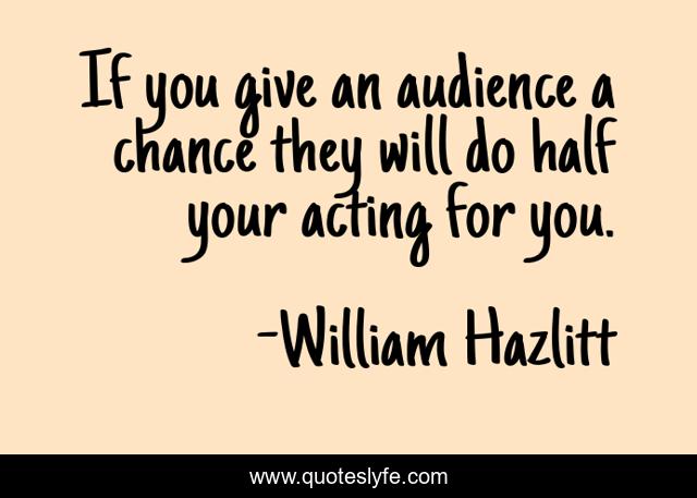 This page presents the quote "If you give an audience a chance they will do half your acting for you.". Author of this quote is William Hazlitt. This quote is about acting, audience,.