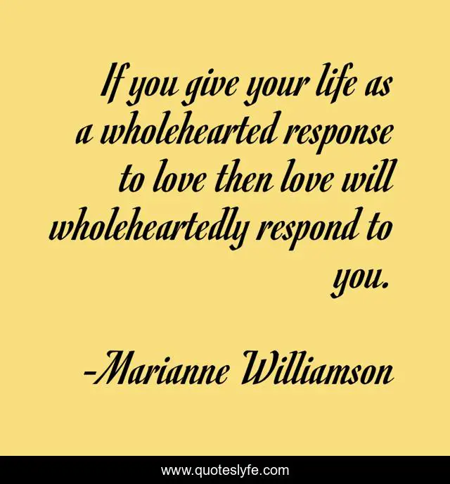 This page presents the quote "If you give your life as a wholehearted response to love then love will wholeheartedly respond to you.". Author of this quote is Marianne Williamson. This quote is about helping, people,.