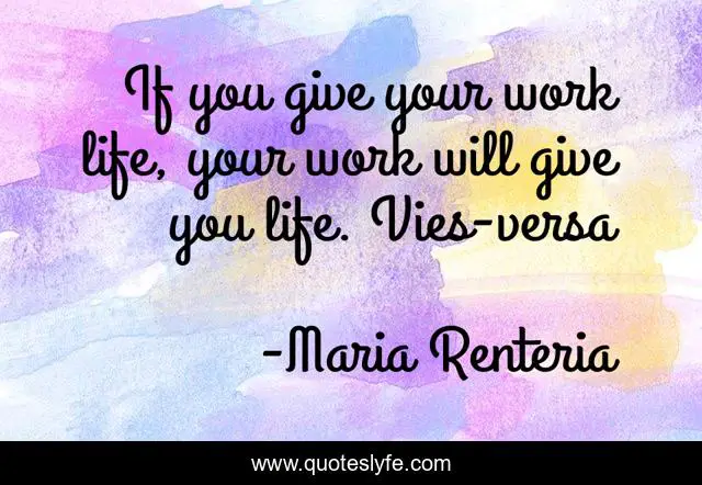 This page presents the quote "If you give your work life, your work will give you life. Vies-versa". Author of this quote is Maria Renteria. This quote is about life, give, work, give-and-take, work-ethic, life-lessons, life-and-living,.