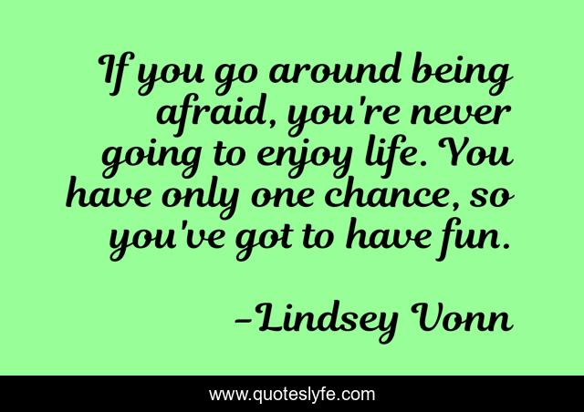This page presents the quote "If you go around being afraid, you're never going to enjoy life. You have only one chance, so you've got to have fun.". Author of this quote is Lindsey Vonn. This quote is about fun, life, enjoy life,.