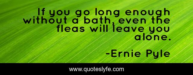 This page presents the quote "If you go long enough without a bath, even the fleas will leave you alone.". Author of this quote is Ernie Pyle. This quote is about long, bath,.