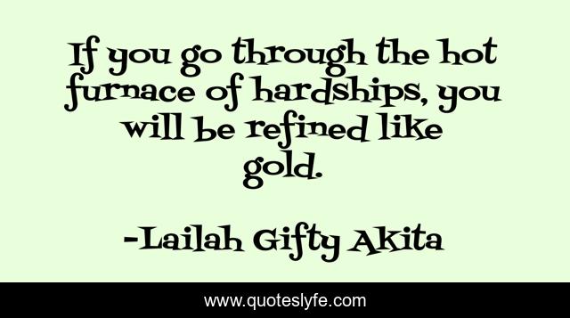 This page presents the quote "If you go through the hot furnace of hardships, you will be refined like gold.". Author of this quote is Lailah Gifty Akita. This quote is about confidence, positive, motivational, positive-attitude, dont-quit, optimistic, overcomer, hardships,.