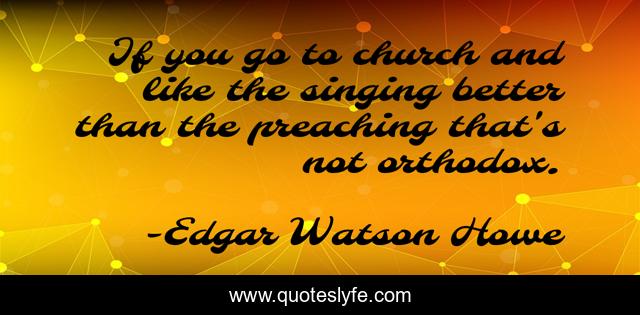This page presents the quote "If you go to church and like the singing better than the preaching that's not orthodox.". Author of this quote is Edgar Watson Howe. This quote is about christians, christianity,.