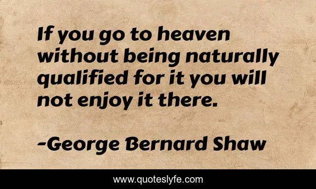 This page presents the quote "If you go to heaven without being naturally qualified for it you will not enjoy it there.". Author of this quote is George Bernard Shaw. .
