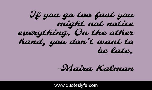 This page presents the quote "If you go too fast you might not notice everything. On the other hand, you don't want to be late.". Author of this quote is Maira Kalman. This quote is about late, awareness, fast,.