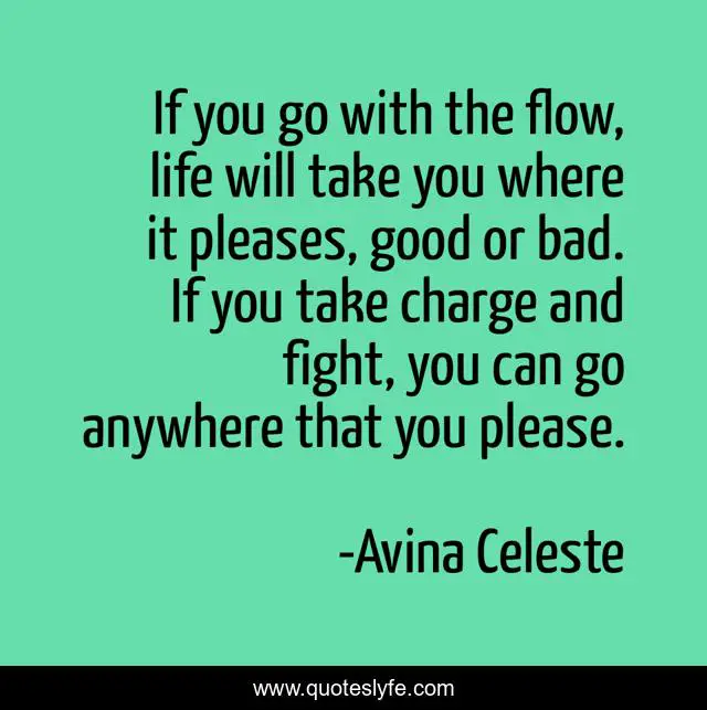 This page presents the quote "If you go with the flow, life will take you where it pleases, good or bad. If you take charge and fight, you can go anywhere that you please.". Author of this quote is Avina Celeste. This quote is about motivation, success, flow, fight, inspirational, enthusiasm,.