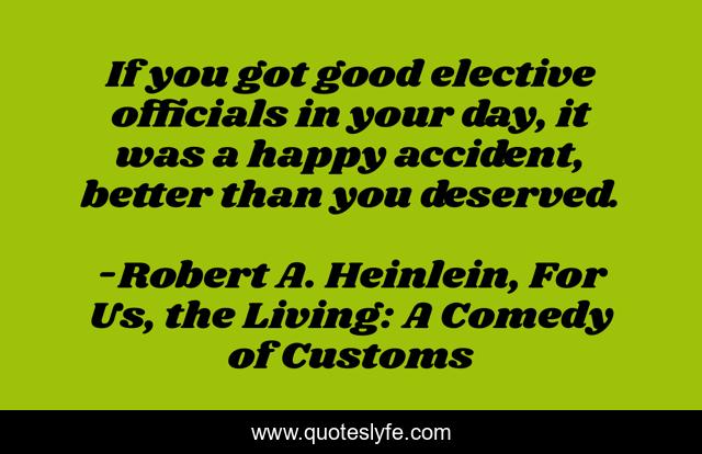 This page presents the quote "If you got good elective officials in your day, it was a happy accident, better than you deserved.". Author of this quote is Robert A. Heinlein, For Us, the Living: A Comedy of Customs. .