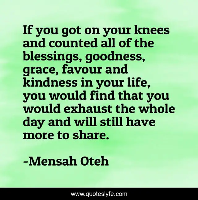 If you got on your knees and counted all of the blessings, goodness, grace, favour and kindness in your life, you would find that you would exhaust the whole day and will still have more to share.