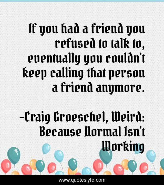 This page presents the quote "If you had a friend you refused to talk to, eventually you couldn't keep calling that person a friend anymore.". Author of this quote is Craig Groeschel, Weird: Because Normal Isn't Working. This quote is about a, eventually, anymore, person, god, had, calling, couldn-t, to,.