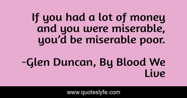 This page presents the quote "If you had a lot of money and you were miserable, you’d be miserable poor.". Author of this quote is Glen Duncan, By Blood We Live. This quote is about poor, miserable, rich,.