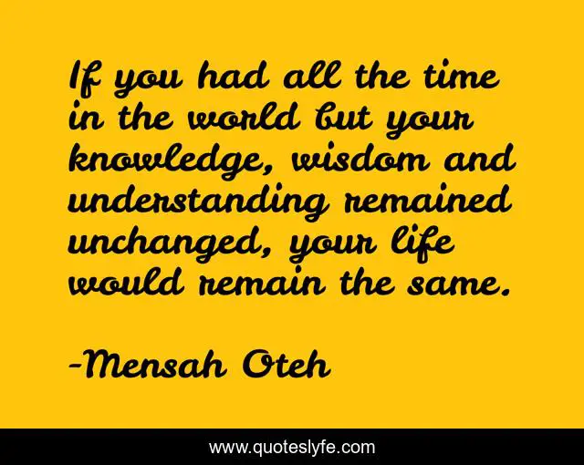 If you had all the time in the world but your knowledge, wisdom and understanding remained unchanged, your life would remain the same.