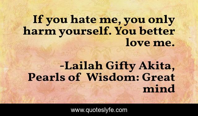 "Lailah Gifty Akita, Pearls of Wisdom: Great mind Quotes." Quoteslyfe.com, 2025. Fri. 05 Dec. 2025. <https://www.quoteslyfe.com/quote/If-you-hate-me-you-only-harm-163512>.