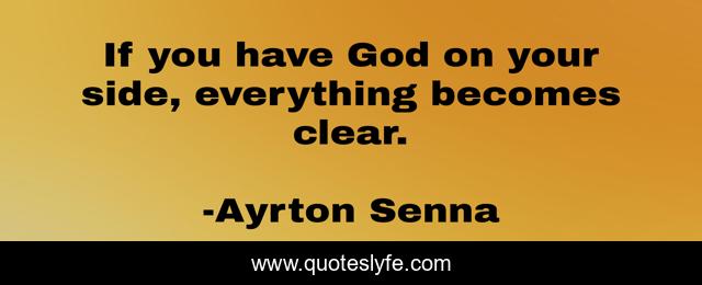 This page presents the quote "If you have God on your side, everything becomes clear.". Author of this quote is Ayrton Senna. This quote is about faith, everything,.