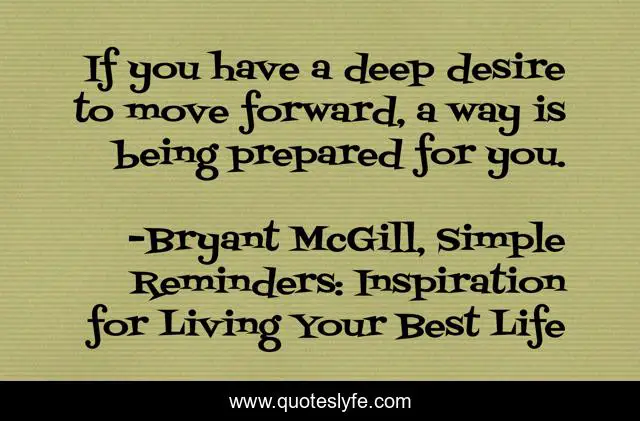 This page presents the quote "If you have a deep desire to move forward, a way is being prepared for you.". Author of this quote is Bryant McGill, Simple Reminders: Inspiration for Living Your Best Life. This quote is about preparedness, growth, moving-forward, desires, learning,.