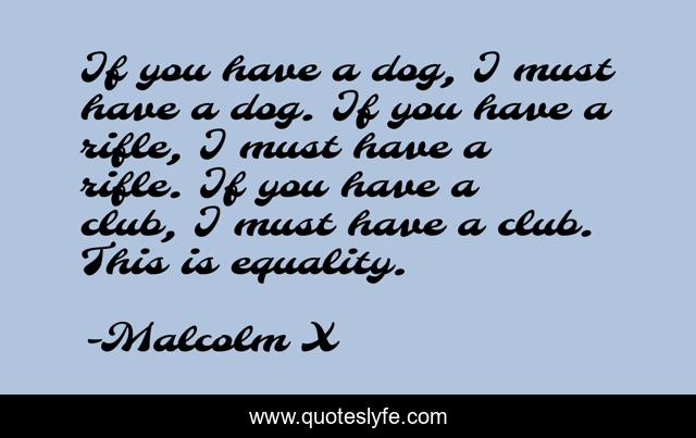 This page presents the quote "If you have a dog, I must have a dog. If you have a rifle, I must have a rifle. If you have a club, I must have a club. This is equality.". Author of this quote is Malcolm X. This quote is about club, dog,.