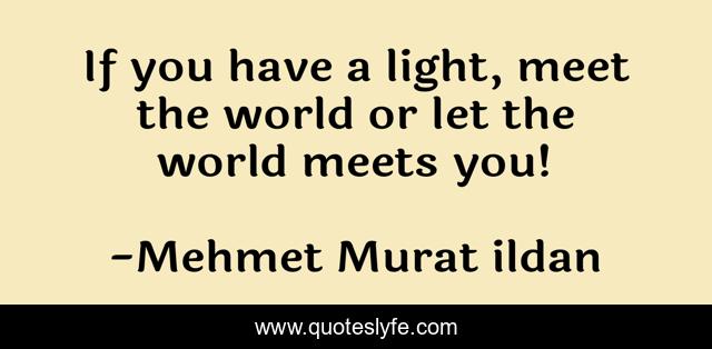 This page presents the quote "If you have a light, meet the world or let the world meets you!". Author of this quote is Mehmet Murat ildan. .