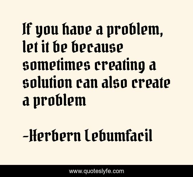 This page presents the quote "If you have a problem, let it be because sometimes creating a solution can also create a problem". Author of this quote is Herbern Lebumfacil. .
