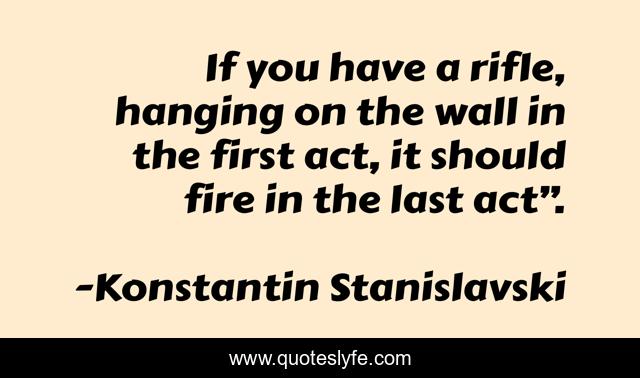 This page presents the quote "If you have a rifle, hanging on the wall in the first act, it should fire in the last act”.". Author of this quote is Konstantin Stanislavski. This quote is about art, play, playing-roles, theater, stage,.